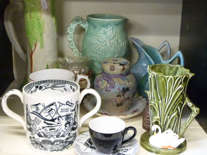 A collection of ceramics including Dresden, Sylvac, Woods, Japanese lidded jar, Ridgway Homemaker etc.