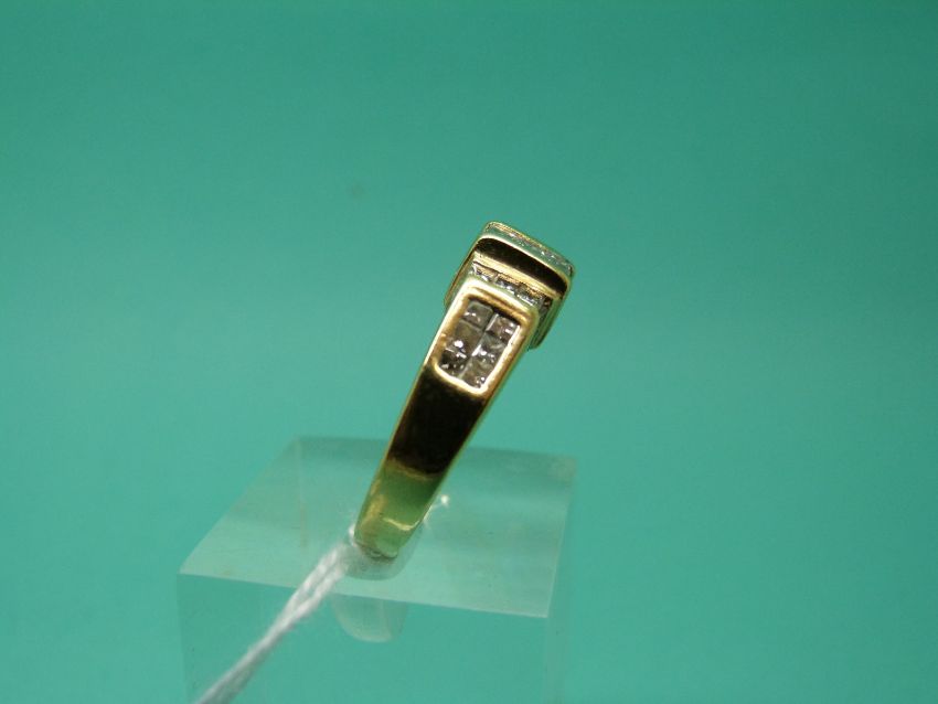 An 18ct gold ring set with 40 princess cut diamonds, total diamond weight approximately 1.35ct (Size P)
