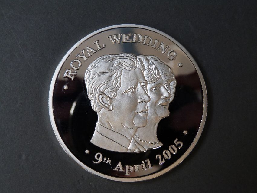 2005 cased 5oz silver commemorative Britannia "Charles and Camilla Royal Wedding" with certificate, together with a similar 2oz example