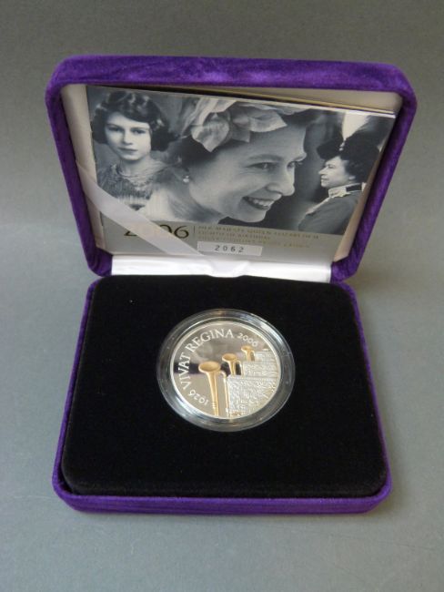 Cased Royal Mint 2006 Queen's 80th Birthday Piedfort silver proof crown, cert no. 2062