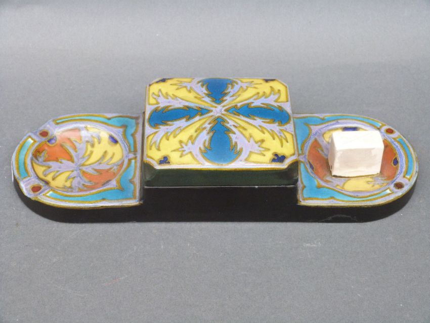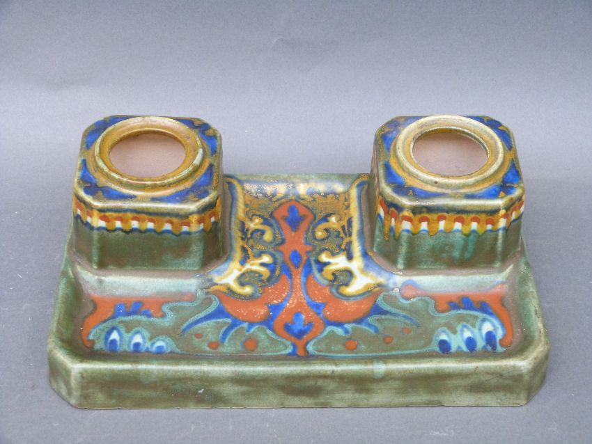 Two Gouda pottery of Holland desk stands/inkwells one in the Suled pattern the other in the Digentia pattern