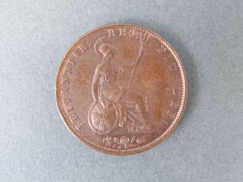 Queen Victoria young head 1853 copper half penny EF with lustre