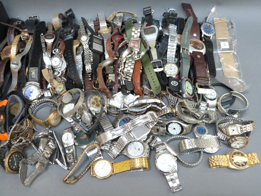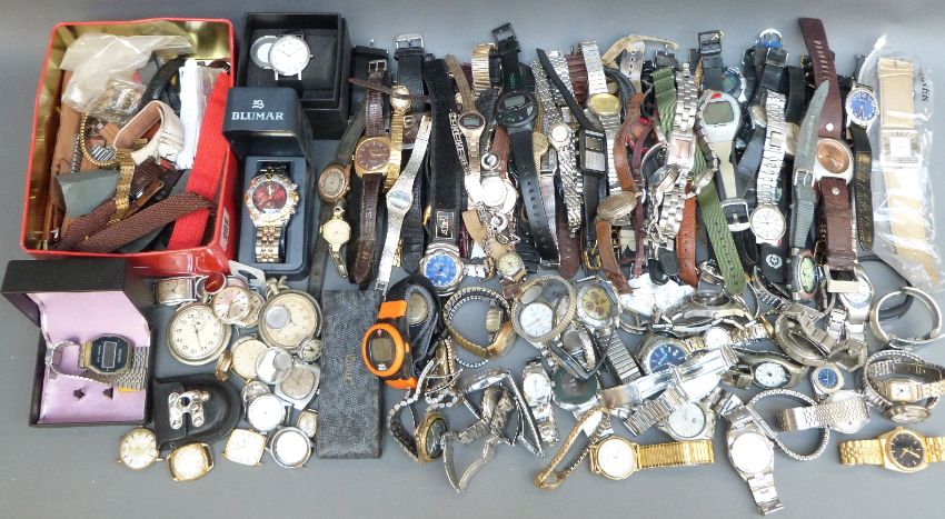 Over 150 various ladies and gentleman's wristwatches, some in original boxes together with over 40 watch straps