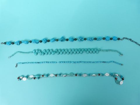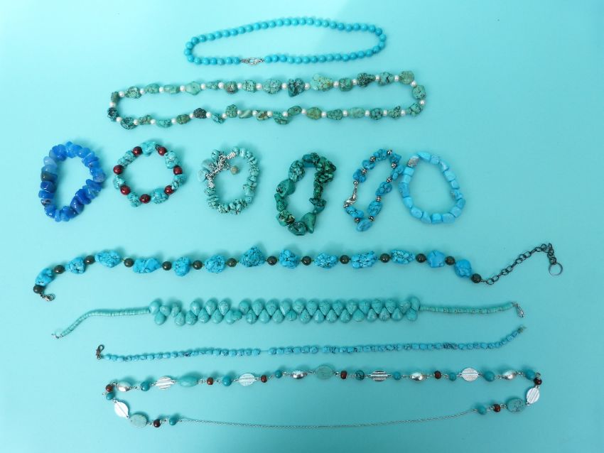 Five turquoise necklaces including one with alternating pearls, four turquoise bracelets etc