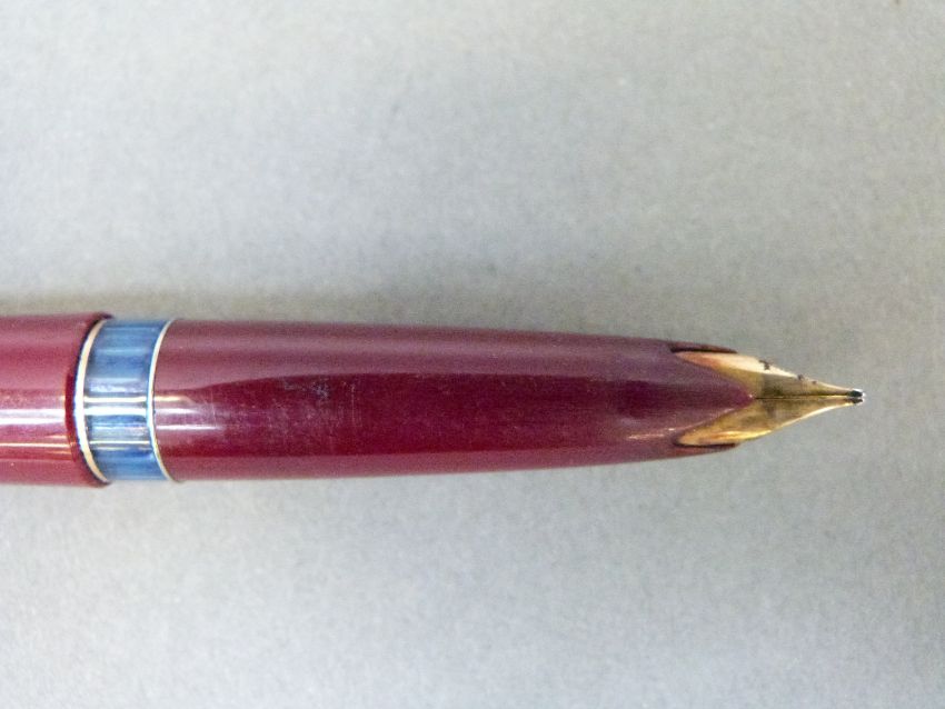 Mont Blanc No 22 fountain pen with sapphire inset barrel and yellow metal fittings