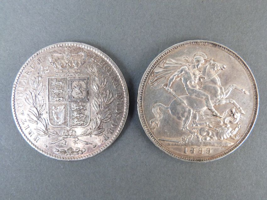 Queen Victoria young head 1844 wreath reverse toned VF together with an 1889 Jubilee example