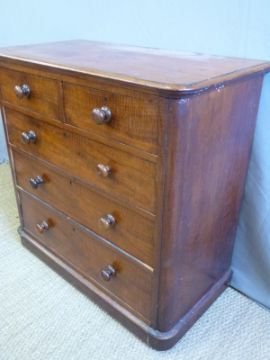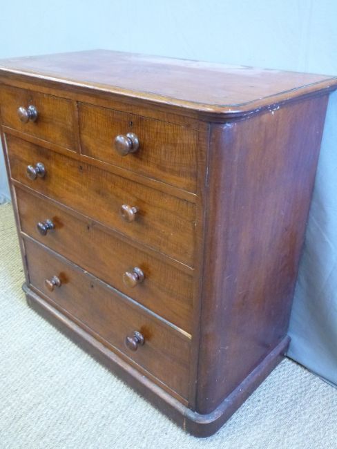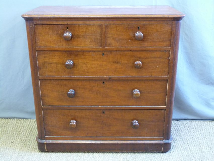 A Victorian mahogany and satinwood or tigerwood chest of two over three drawers, W104 x D55 x H103cm