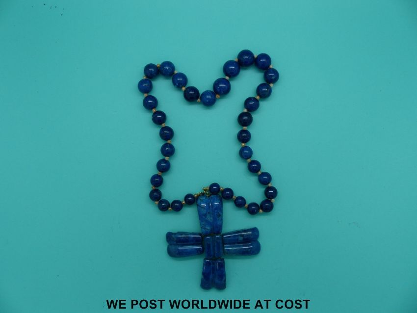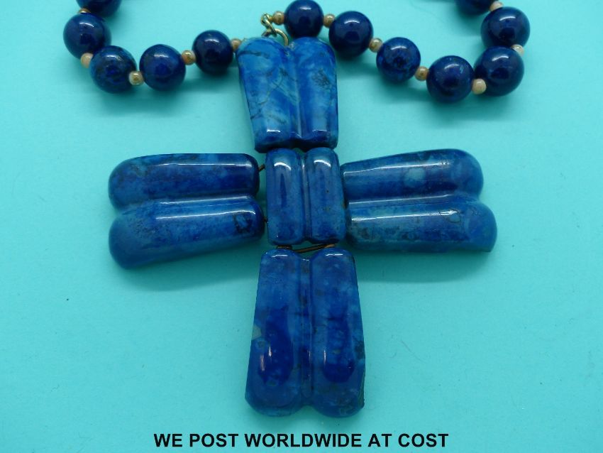 A 19thC Russian cross on a sodalite/azurite beaded necklace