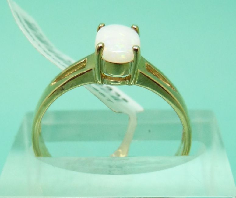 A 9ct gold ring set with an opal and diamonds, 9ct gold ring set with an opal and a 9ct gold ring set with an agate cabochon and diamonds