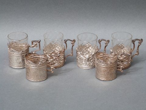 Six Victorian hallmarked silver cup holders, all with import marks for Chester 1899 or 1900