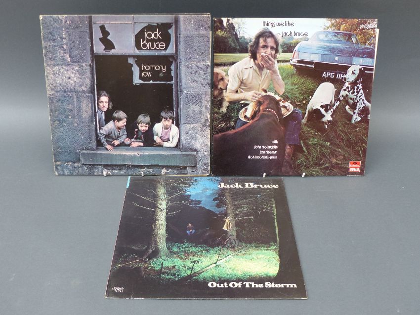 Three albums from Cream vocalist and bass player Jack Bruce, Things We Like (1st issue), Harmony Row and Out of the Storm, condition appears to be VG+