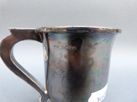 A hallmarked silver christening tankard or mug, Birmingham 1946, maker's mark rubbed 95g, height 8cm