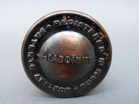 A possible gramophone needle tin named to lid Aladdinite, diameter 4.5cm