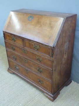 A 19thC mahogany bureau with two over three graduated drawers and fitted interior raised on bracket feet, W98 x D46 x H104cm