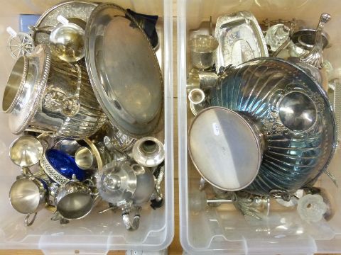 A quantity of silver plate to include punch bowl, teaware, urn with lion mask handles, Kate and William Commemorative coins etc