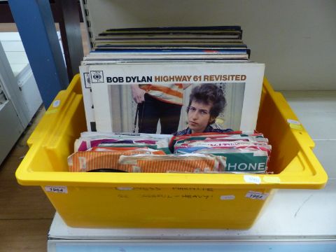 Approximately 50 various LPs including six Bob Dylan on orange CBS and approximately 40 60's pop singles
