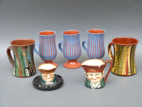 Harry Juniper, Bideford, Devon slipware pottery, Royal Doulton Old Charley pin dish and character jug