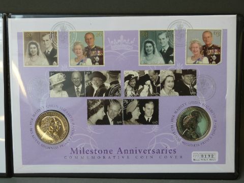 A 150th Anniversary of the Victoria Cross Commemorative silver coin cover limited edition of 450 comprising covers and two 2006 silver 50 pence coins, VC award and Heroic acts examples in folder with certificates, together with a similar cover for 'Milestone Anniversaries', cert number 950, containing two cupro-nickel crowns