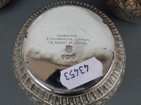 A Victorian Goldsmiths and Silversmiths Company hallmarked silver bachelors tea set in the Indian style, London 1891, weight 580g all in, height of the teapot 12.5cm