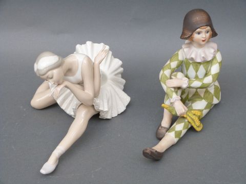 A Lladro ballerina in pose and a continental bisque figure