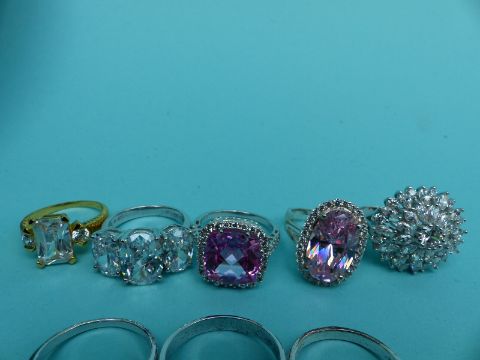 Eleven rings set with large cubic zirconia including silver