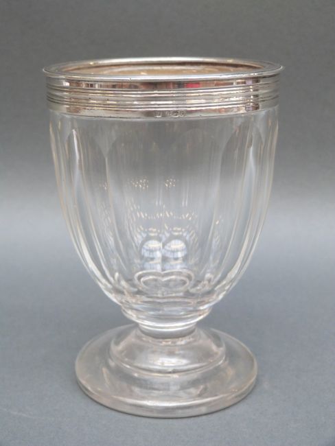 A Georgian hallmarked silver mounted cut glass goblet, London 1792, makers mark IT, height 13cm