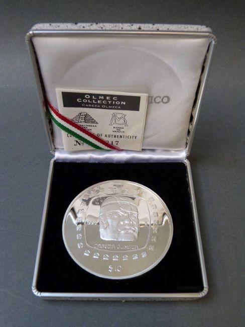 Banco Mexico cased 5oz silver 10 dollar coin with certificate no. 0317