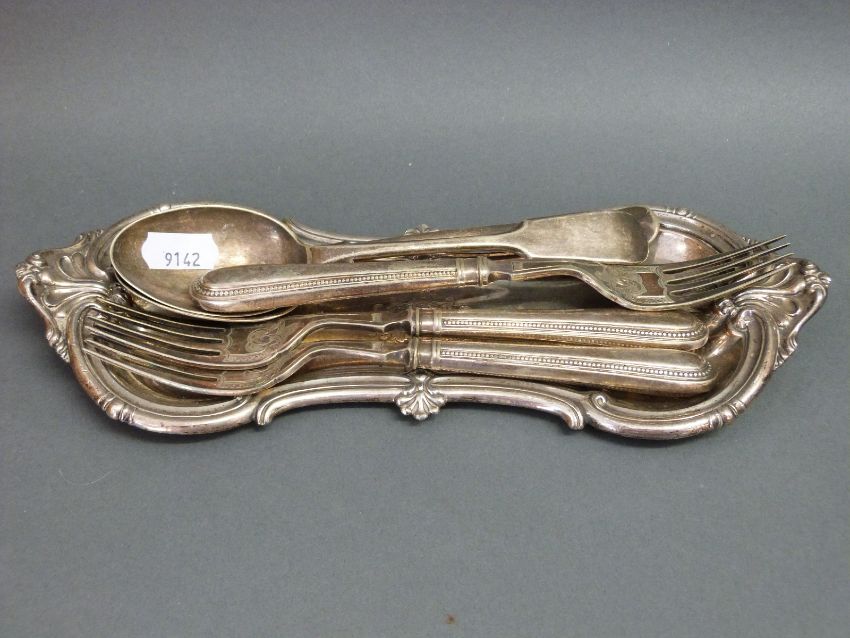 A quantity of silver plate including King's pattern cutlery, coaster etc