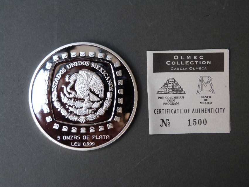Banco Mexico cased 5oz silver 10 dollar coin with certificate no. 1500