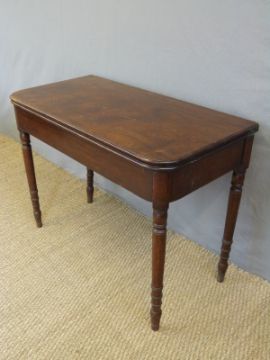 A Georgian mahogany fold over card or occasional table raised on turned legs, W100 x D50 x H75cm