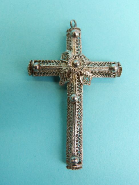 Three white metal filigree cross pendants