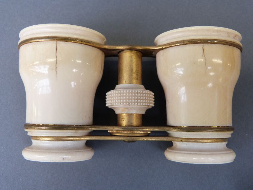 Cased ivory opera glasses in plush case Mr Streeter, New Bond Street, Goldsmiths to the Royal Family