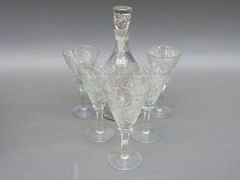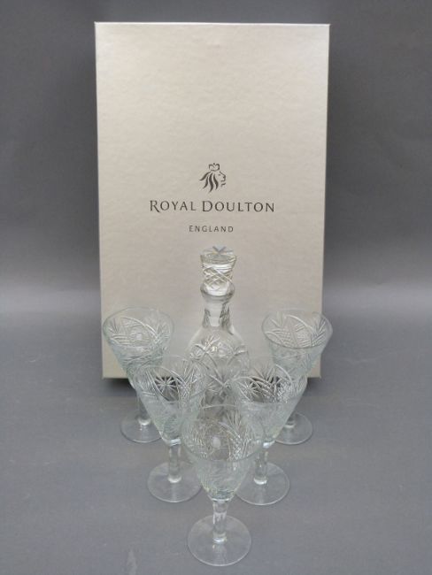 A Royal Doulton boxed cut glass decanter and glass set