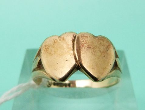 A 9ct gold signet ring in the form of two hearts, weight 3.5g