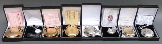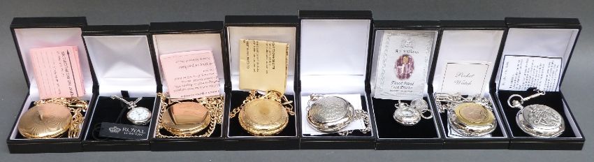Eight Royal Mint and similar pocket watches, all in original boxes, some with certificates.