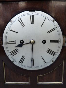 A Winterhalder and Hofmeier shelf clock in mahogany case the silvered Roman dial with spade hands, the movement chiming on five gongs, 39cm tall