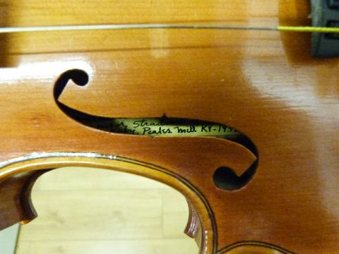A violin labelled BH Huckaby, Peaks Mill, KY - 1995, Isabella model, with 35.5cm one piece flame back