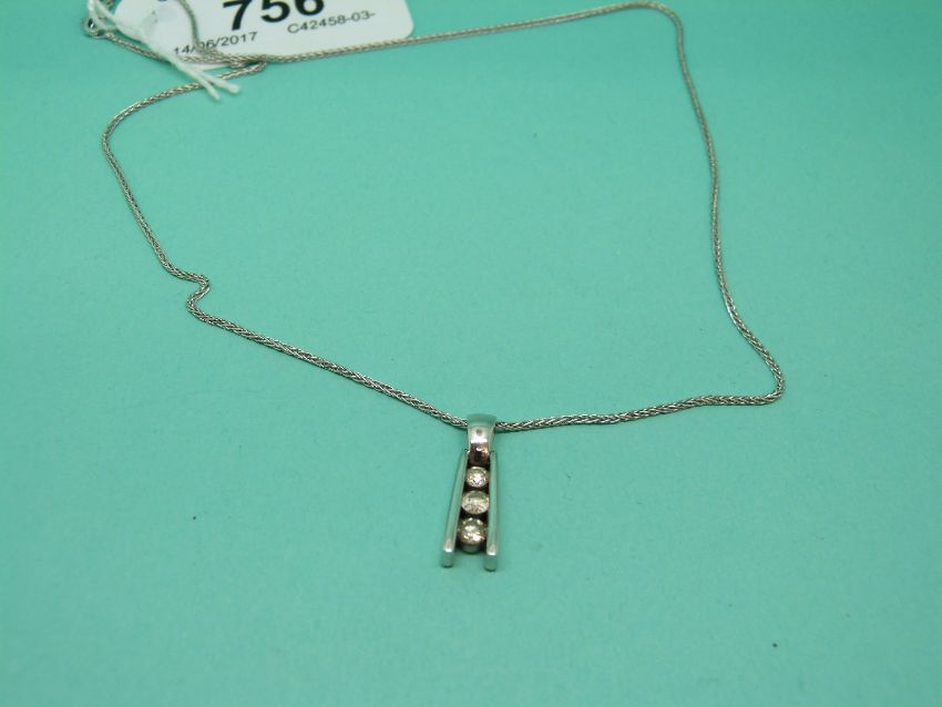 An 18ct gold necklace/ chain and an 18ct white gold pendant set with three graduating diamonds