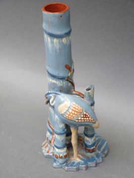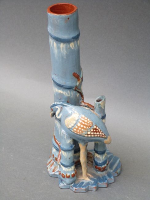 A CH Brannam Barum Pottery figural stork spill vase 1891, 24cm tall