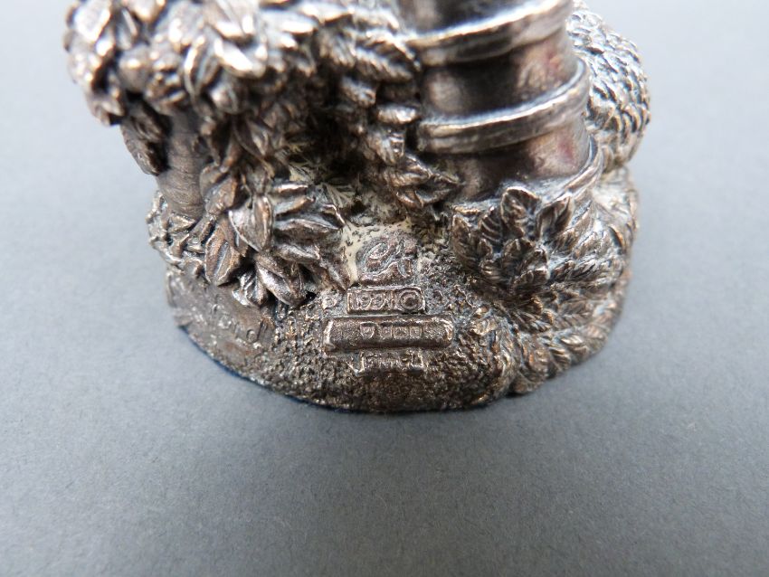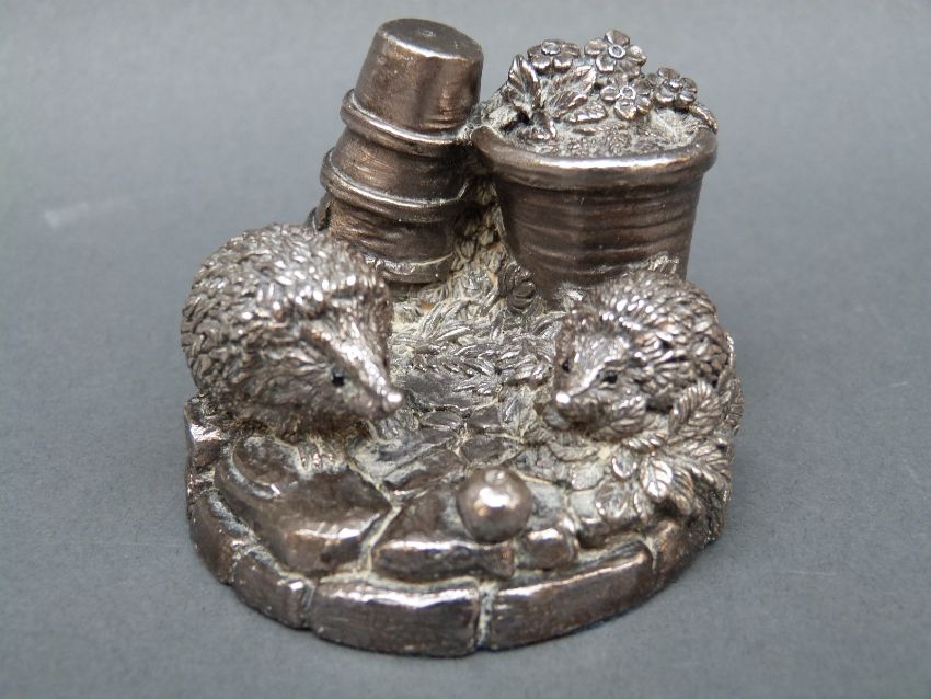 A modern hallmarked silver figure group of hedgehogs, height 4.5cm