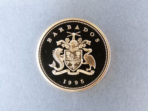 A cased 1995 Barbados 14ct gold proof 10 dollar coin, 7.776g, with certificate (no 0836)