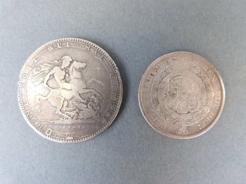 George III 1820 F crown, together with a F bull head 1816 half crown, both with 'coincraft' documents