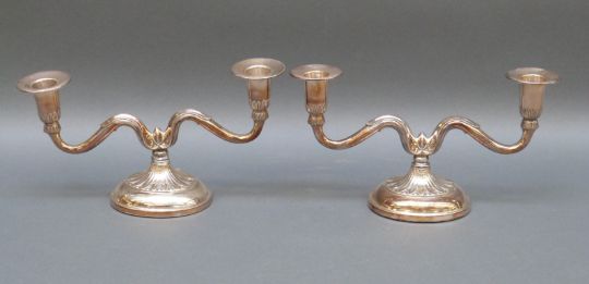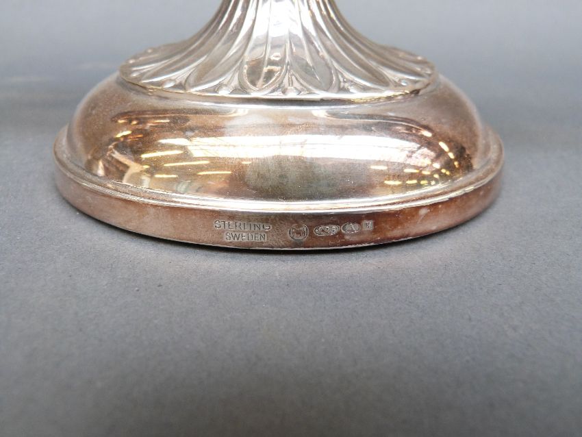 A pair of Swedish hallmarked silver candelabra with import marks for Birmingham, width 23cm