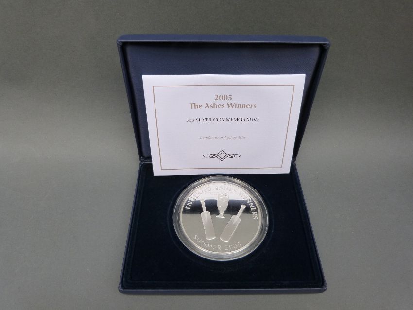 A 5oz silver 2005 The Ashes Winners cased commemorative coin, limited edition of 500 with certificate