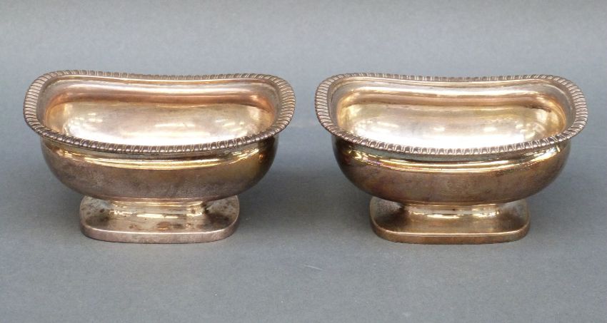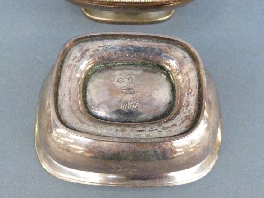 A pair of William IV hallmarked silver pedestal salts, London 1819 maker J F Terrey & Co, weight 205g width 9.5cm