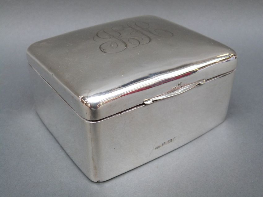 A hallmarked silver cigarette box, Birmingham 1919, width 11cm