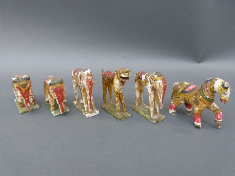 Six painted Indian animals, possibly part of a Noah's Ark or similar toy, height approximately 10cm