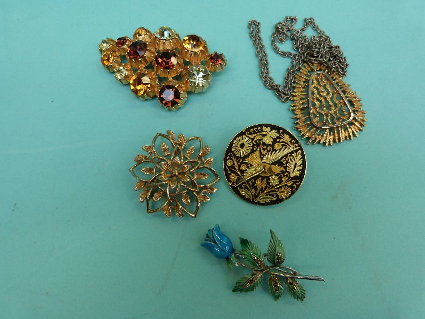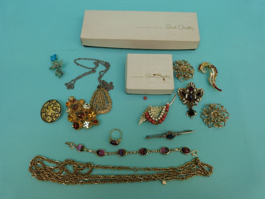 A collection of brooches to include Sarah Coventry, Sarah Coventry ring and bracelet etc