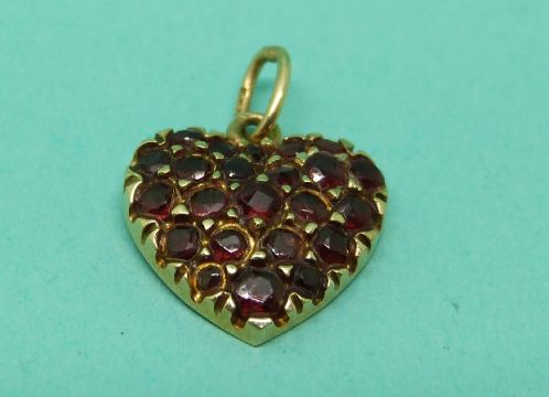 A 15ct gold heart pendant set with garnets