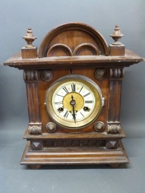 Three mantel clocks including two c1900 German examples, one Junghan's, the other a three train c1950 Smiths example